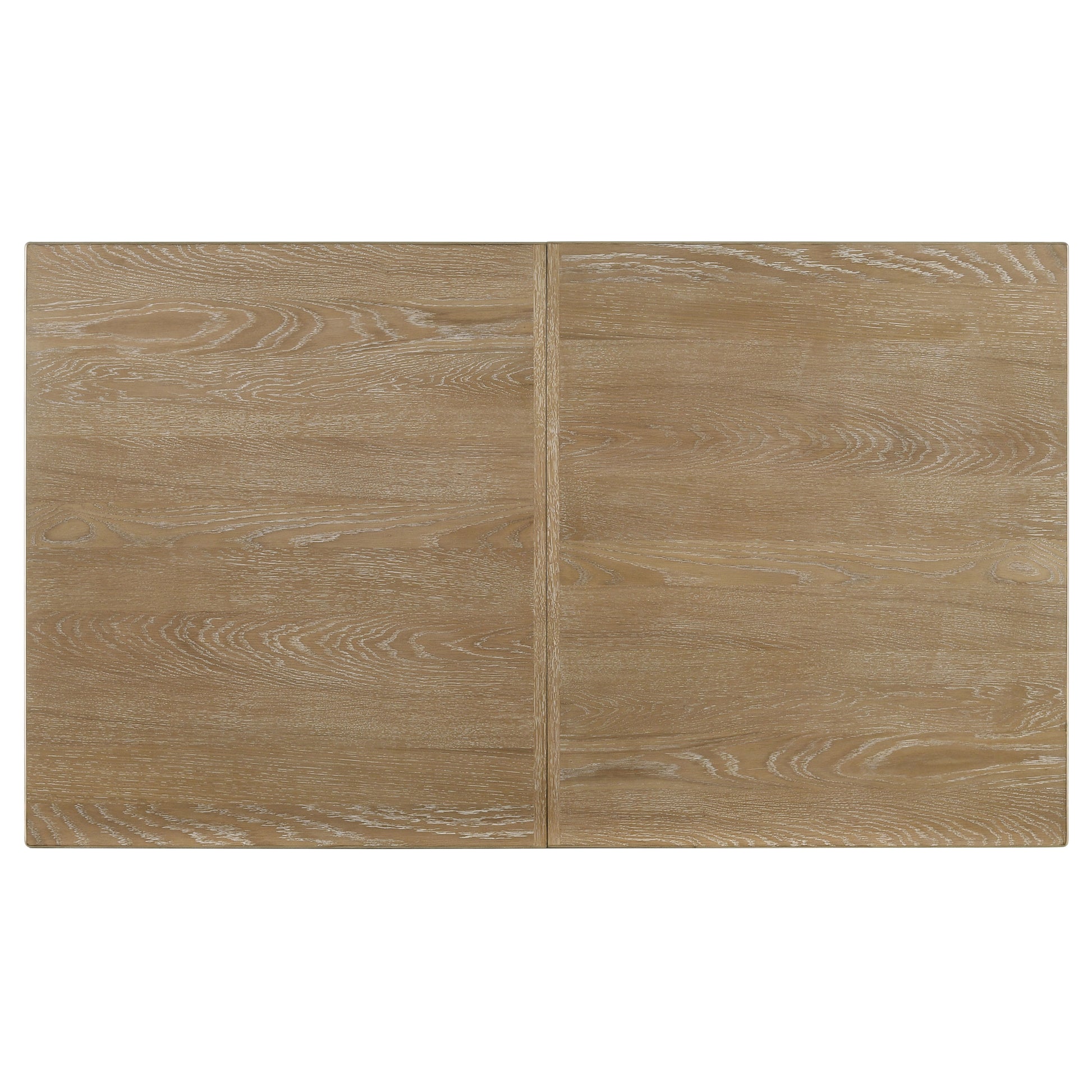 • Dining table with a distressed light brown finish for a soft, elegant aesthetic