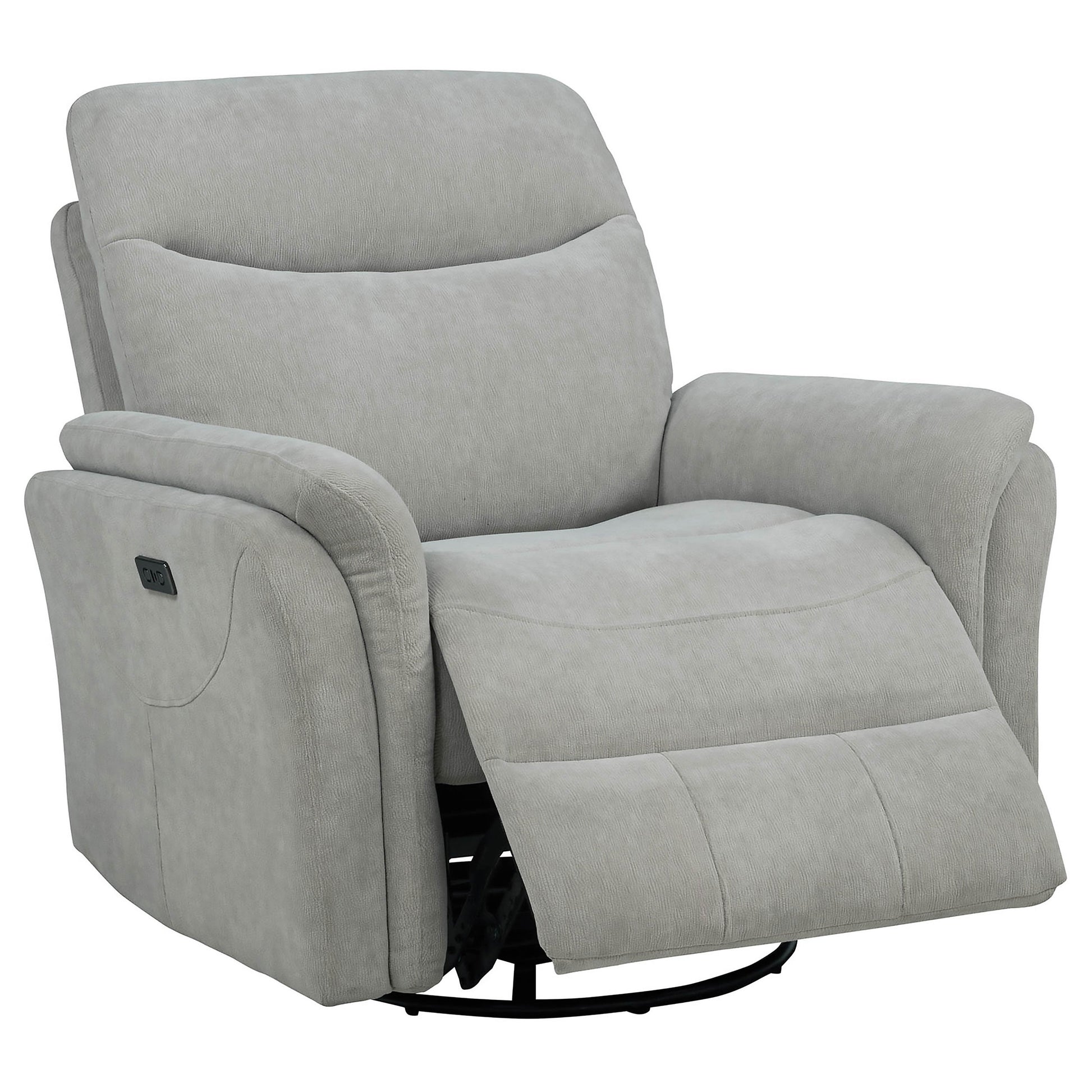 • Swivel glider recliner features power recline for effortless, adjustable comfort