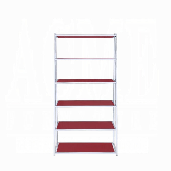 Coleen 6-Tier leaning bookcase is attractive and free standing and can be used as a bookshelf or display shelf. There are 6 total wooden shelves of differing sizes with an open back panel and a metal frame with a chrome finish. This bookshelf is the perfect addition to any room. Some Assembly Required.