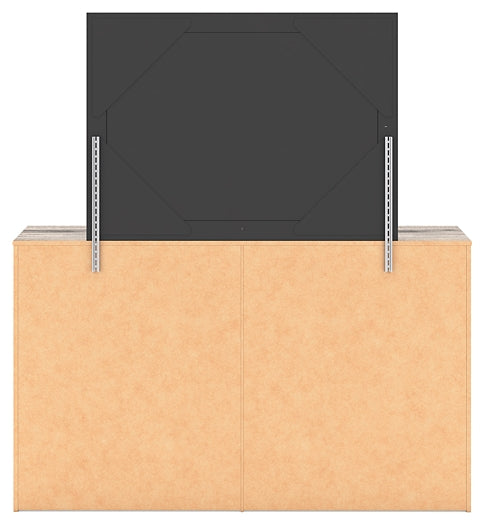 Casually cool style and lots of storage go hand in hand with this dresser and mirror. A weathered brown finish over replicated oak grain creates an easygoing vibe, setting the scene in your restful retreat. Clean lines and modern handles provide a fuss-free look. And the dresser's six roomy drawers give you plenty of space for stowing away clothes and more.