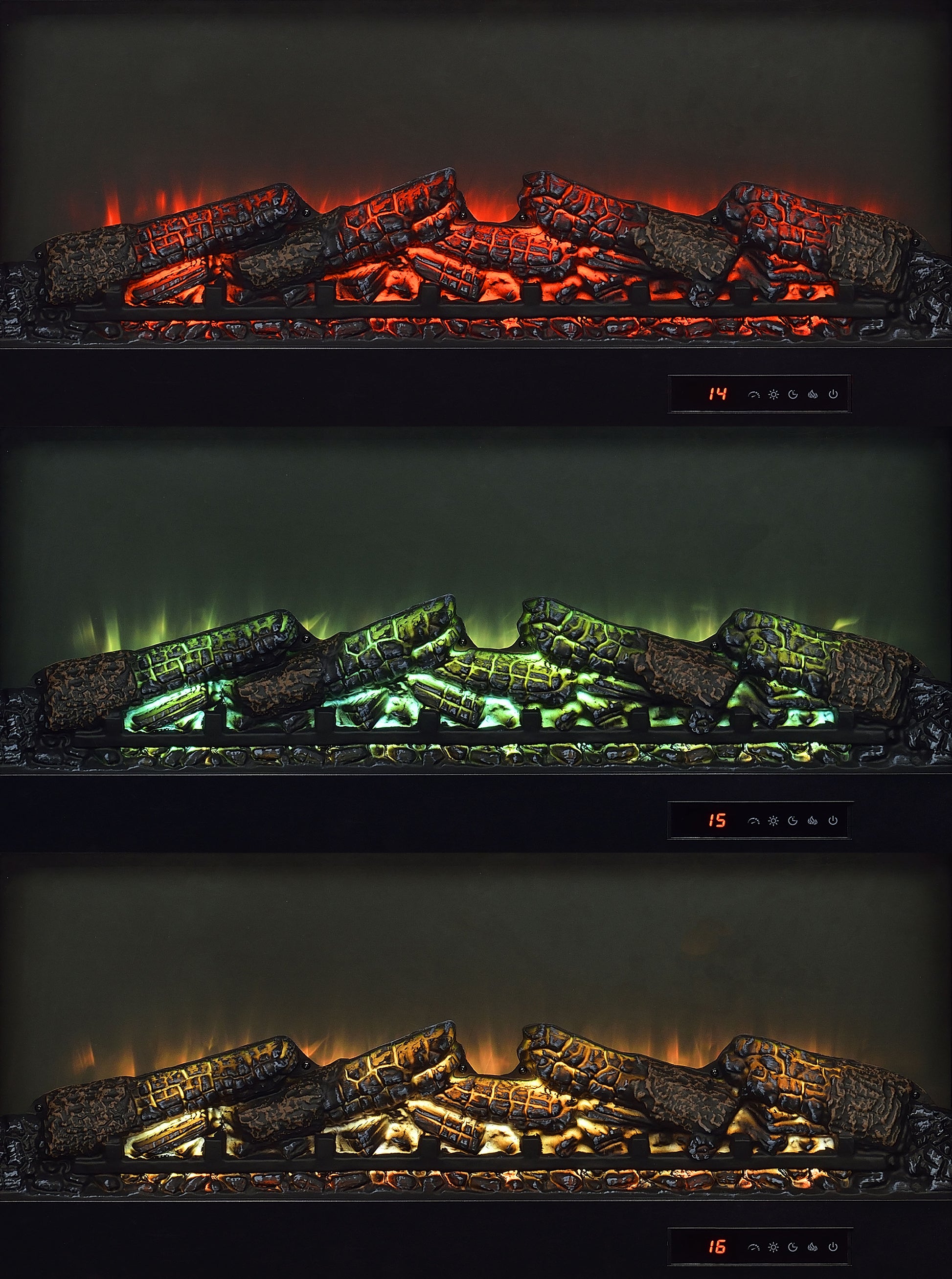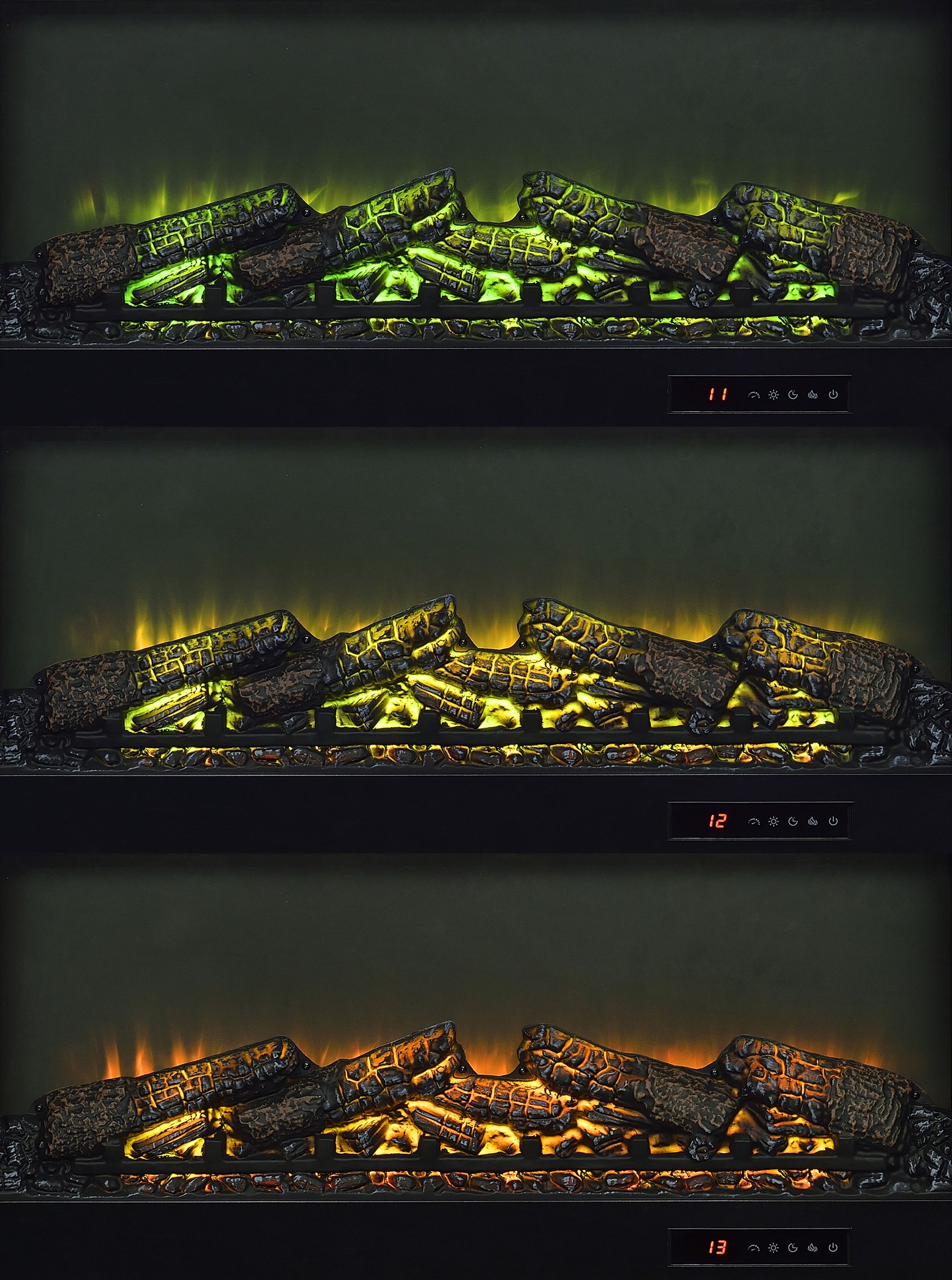 • Accommodates TVs up to sixty-five inches and includes a wireless remote for the firebox
