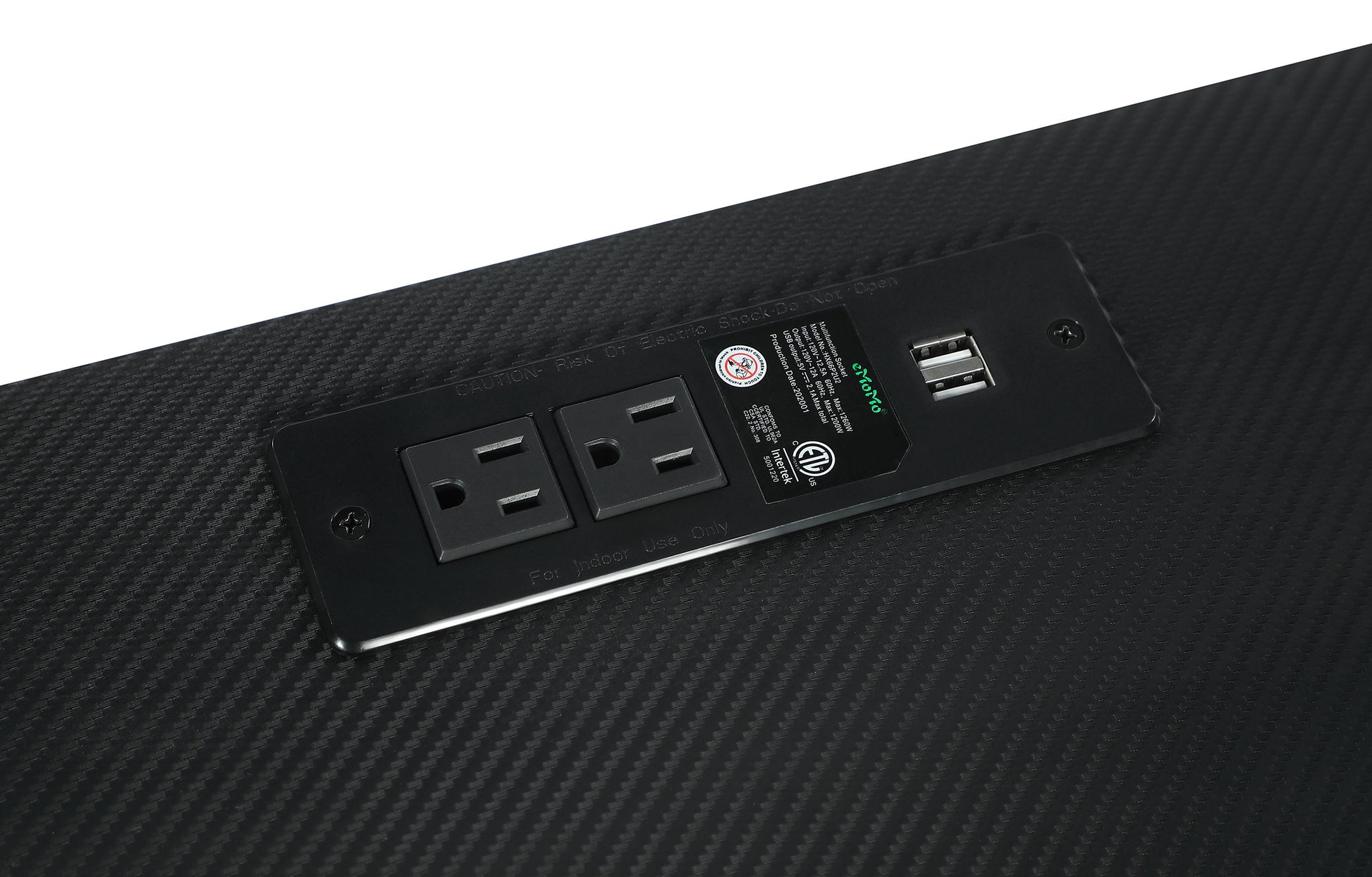• Features a water and stain-resistant carbon fiber textured PVC desk top
