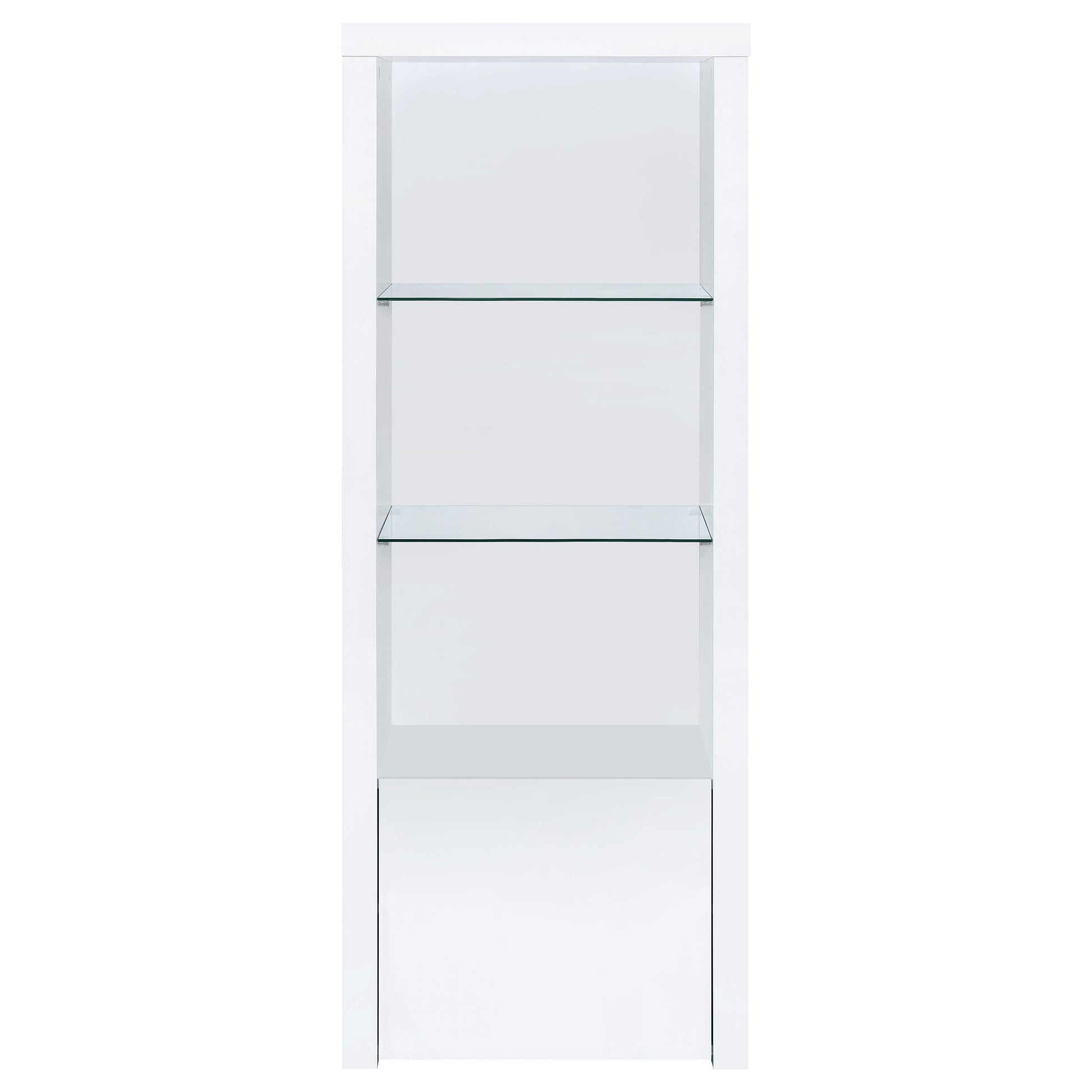 • Sleek, modern design with pristine glossy white-on-white finish and clear glass details