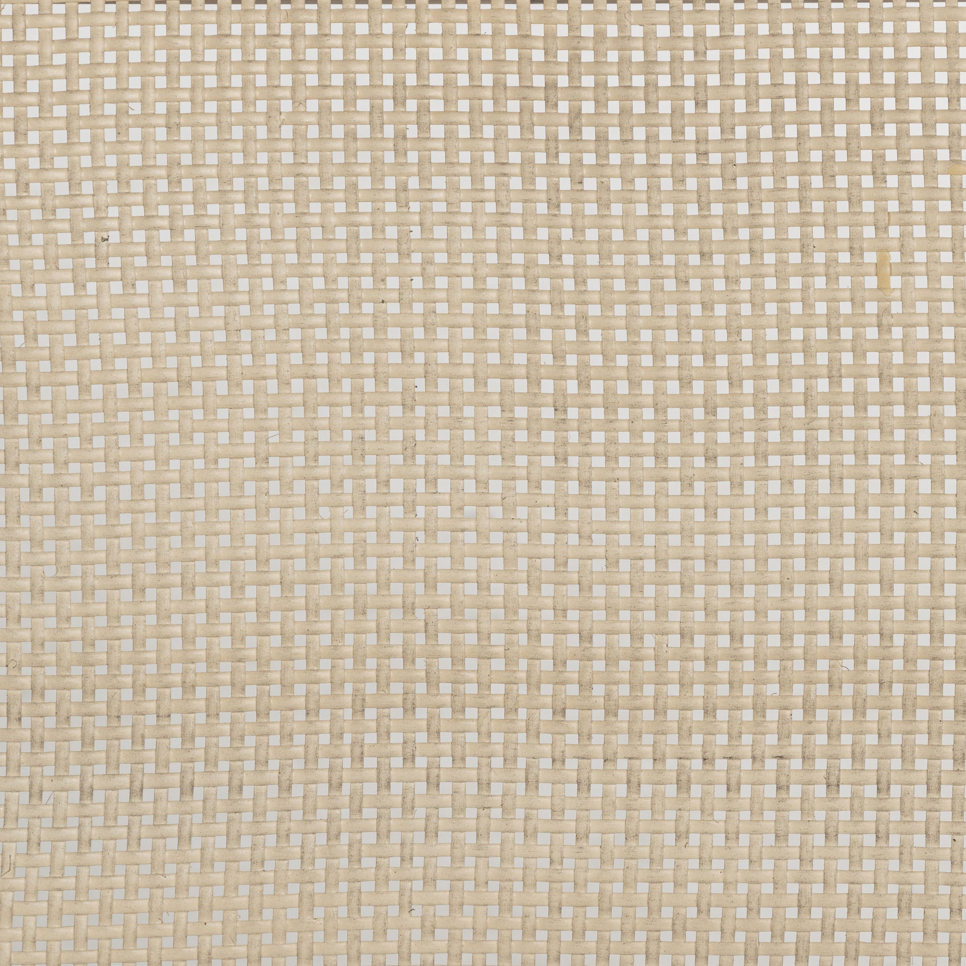 • Hand-woven radio weave cane backrests on chairs paired with foam seat cushions in beige fabric
