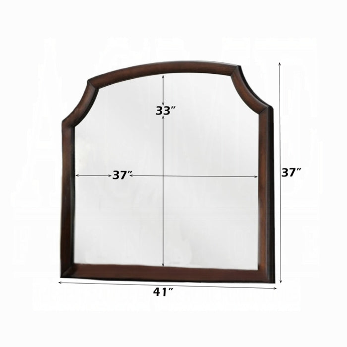 The Lancaster mirror is in espresso finish. The distinctive shape of the mirror will give the bedroom a fresh look. Create unique and modern flair to your bedroom with this transitional mirror.
