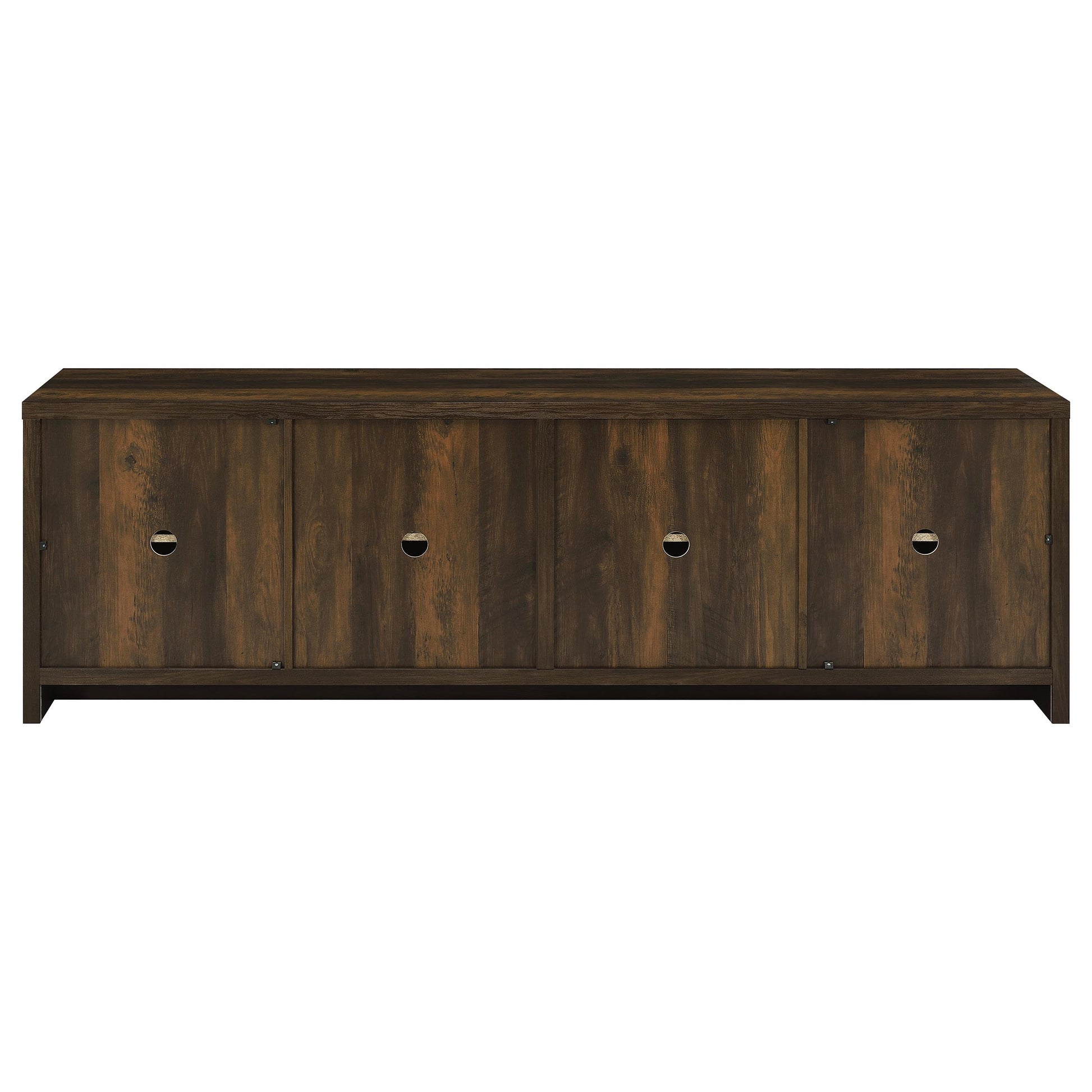 • Four-door TV stand with adjustable shelves and cord management openings