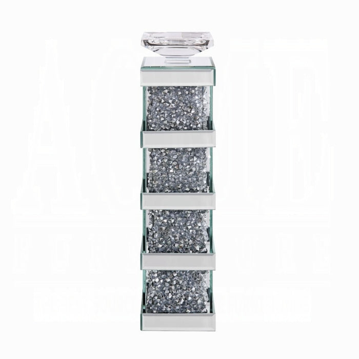 Cast a warm glow over any space in your home with this Noralie candleholder. More than stylish, this piece will bring sophistication to your home with its mirrors and faux gem inlay. This gleaming piece comes in two different sizes to choose the one that complements your decor.