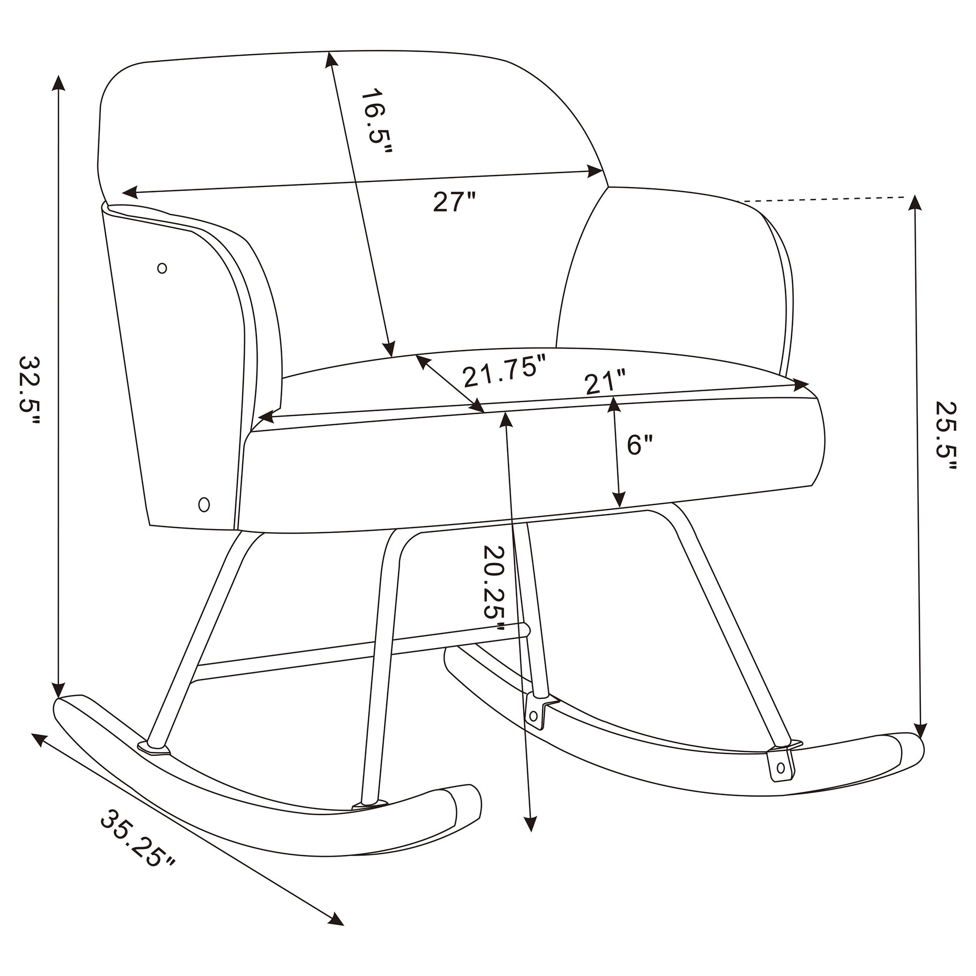 This modern rocking chair blends cozy comfort with sophisticated design, making it an ideal addition to any contemporary home. The plush boucle fabric upholstery wraps the seat and backrest, providing a soft and inviting surface. The walnut-finished bentwood frame adds warmth and elegance, while the curved wooden rockers and sturdy metal legs ensure smooth, stable motion. Whether used in a living room, nursery, or reading nook, this chair's sleek, modern silhouette complements a variety of interiors. Combining high-quality materials and a striking design, this rocker offers both style and comfort for your favorite spaces.