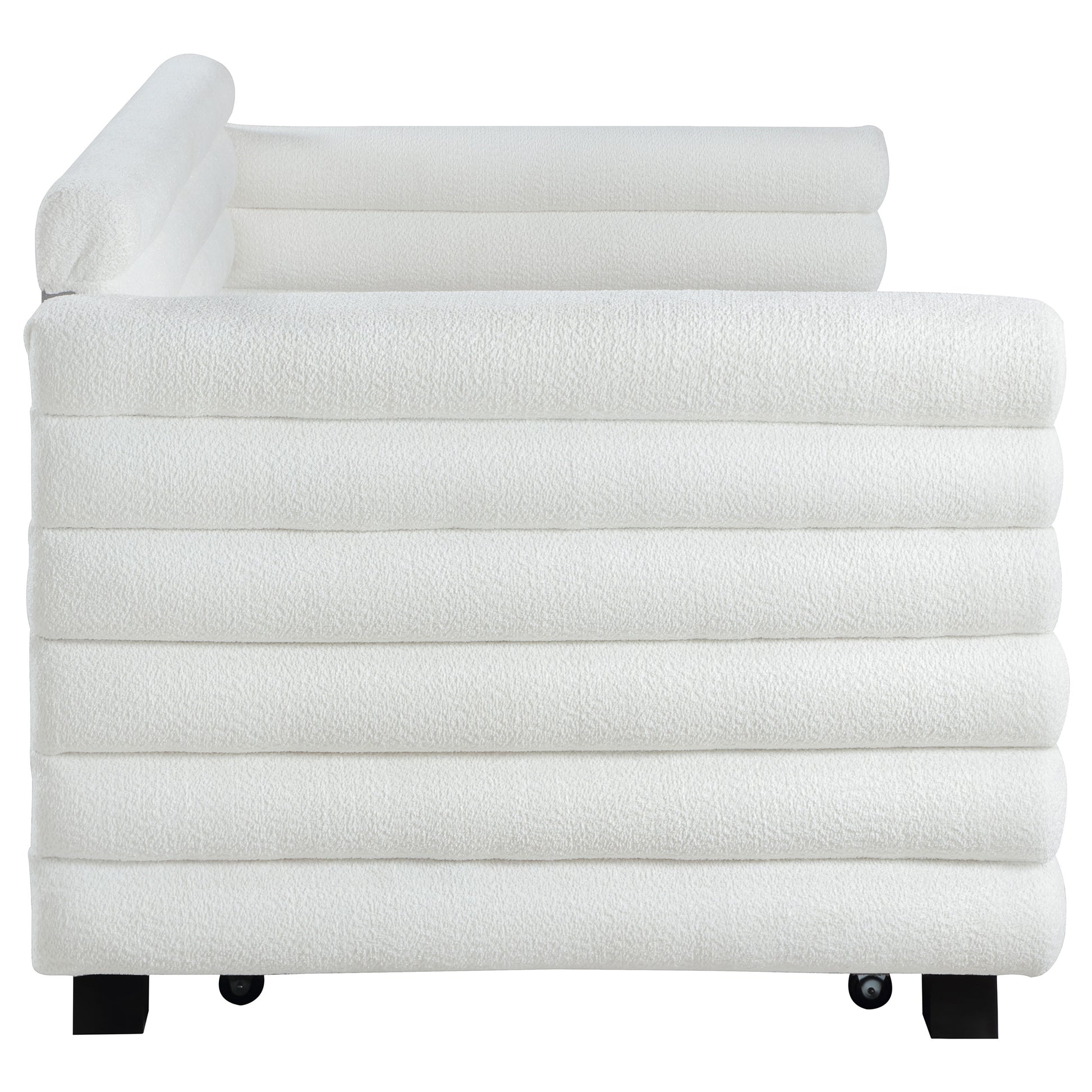 Patricia Boucle Upholstered Twin Day Bed with Trundle White
