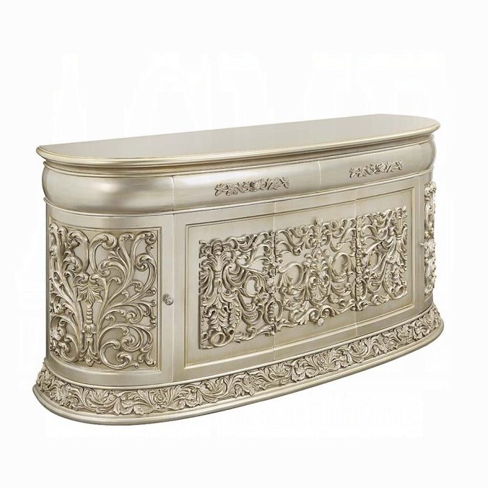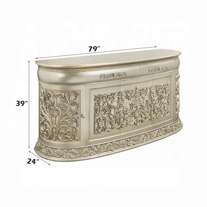 Opulent and magnificent the Sornia dining table will be the focal point of any dining room and is sure to wow guests. The clear glass tabletop allows for the fine details to be enjoyed while dining and will be the topic of conversation throughout the night. The large size is excellent for hosting larger gatherings.