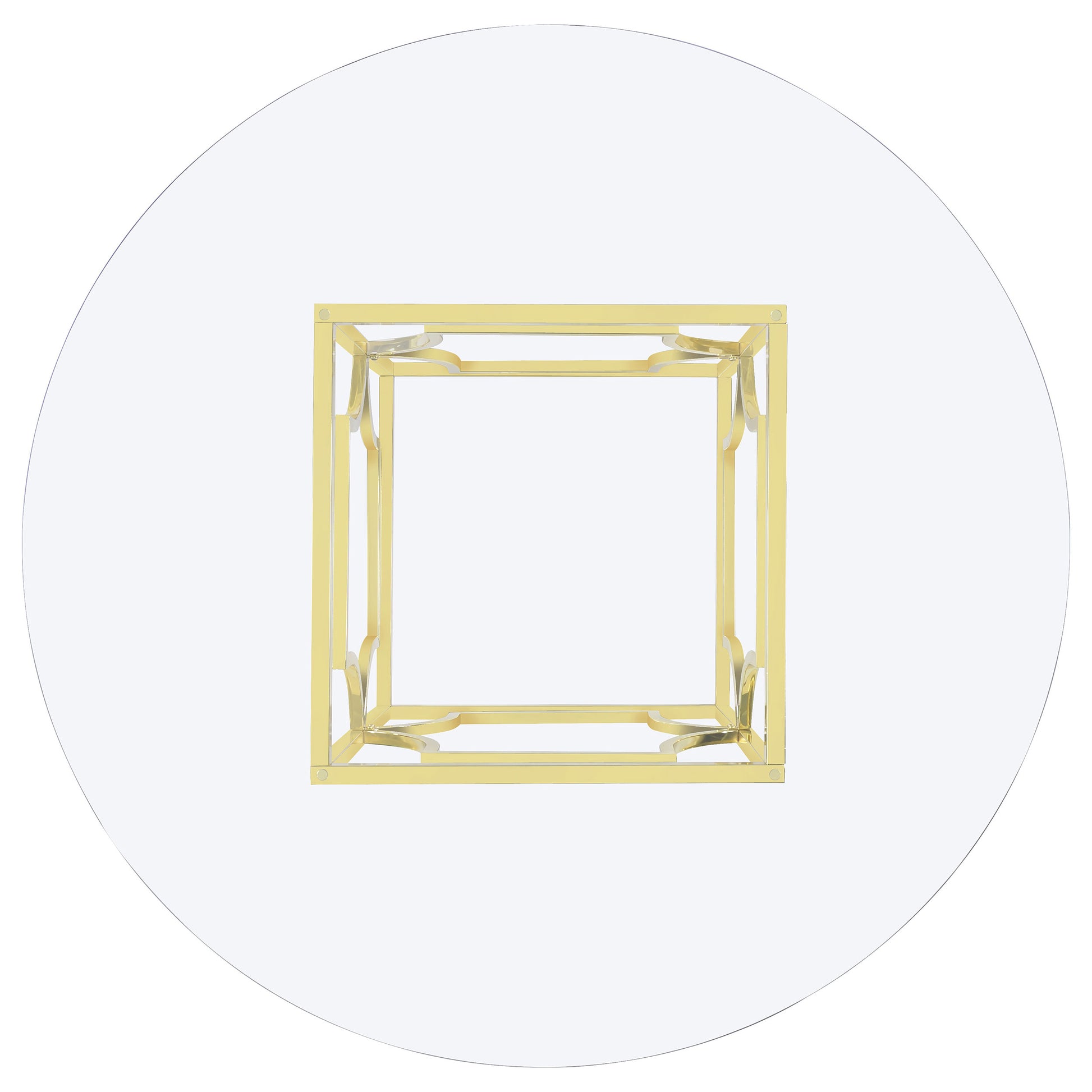 This round dining table creates a refined focal point with its clear tempered glass top and artful geometric base. The sculptural metal frame features intersecting curves and angles, electroplated in a high-shine finish for a bold, contemporary effect. Its open design keeps the space light, while the tempered glass adds a durable, easy-care surface for everyday use or entertaining.