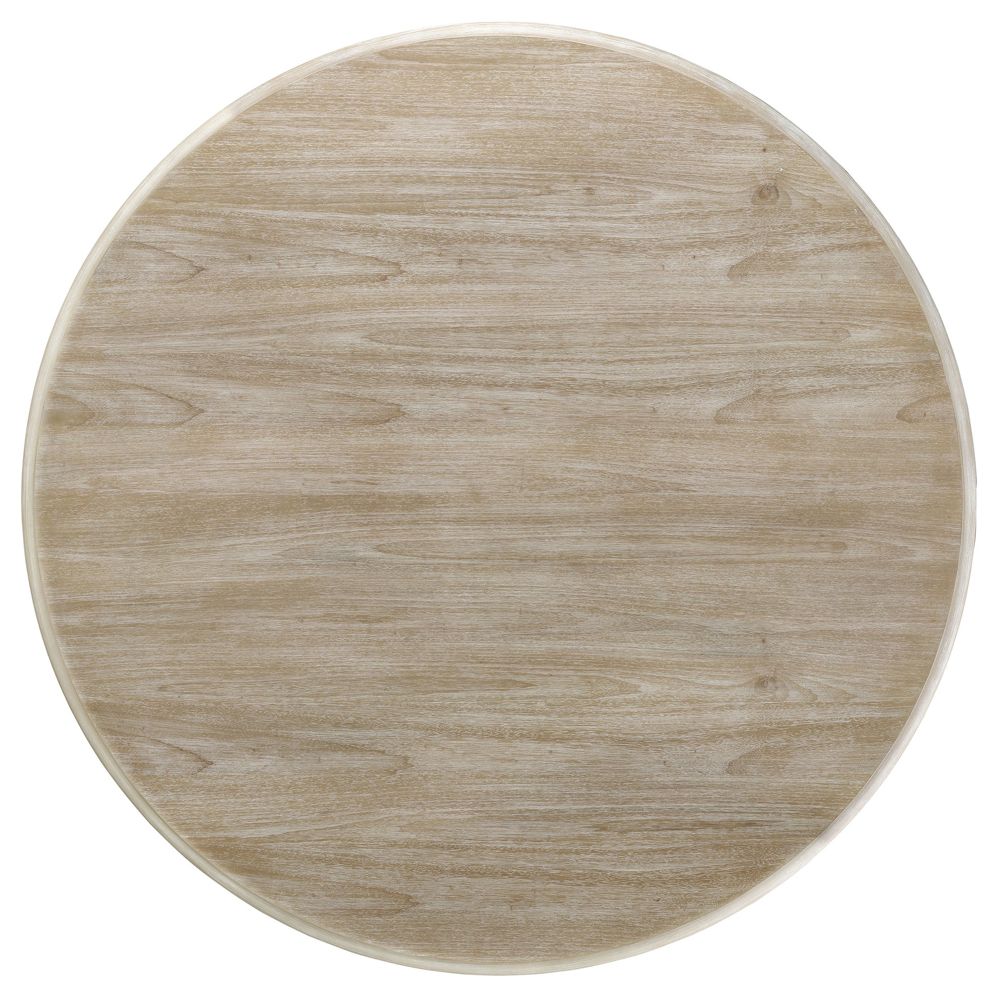 Design your inviting dining space around this modern farmhouse round dining table. Its welcoming ambiance is encouraged with its silhouette, creating a perfect spot for family dinners and easy-going conversation. The table features a decorative base with pedestal style despite its four curvy, flared legs that lean toward a classic look. It features hardwood construction with veneers, all in a white finish with wire brushing that create a distressed, lived-in look and feel. Adda vase of fresh cut flowers or stylish linens and you're all set to go.