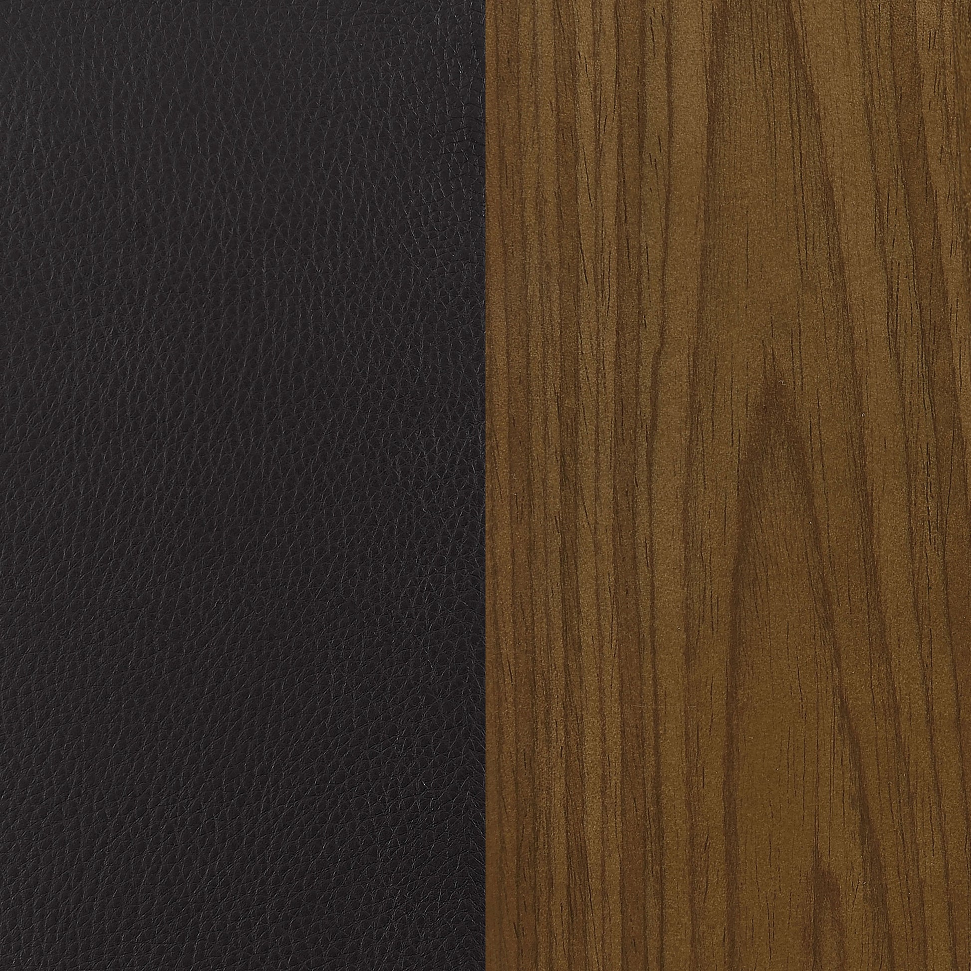 • Smooth black PU upholstery complements understated walnut finish of simple wooden base